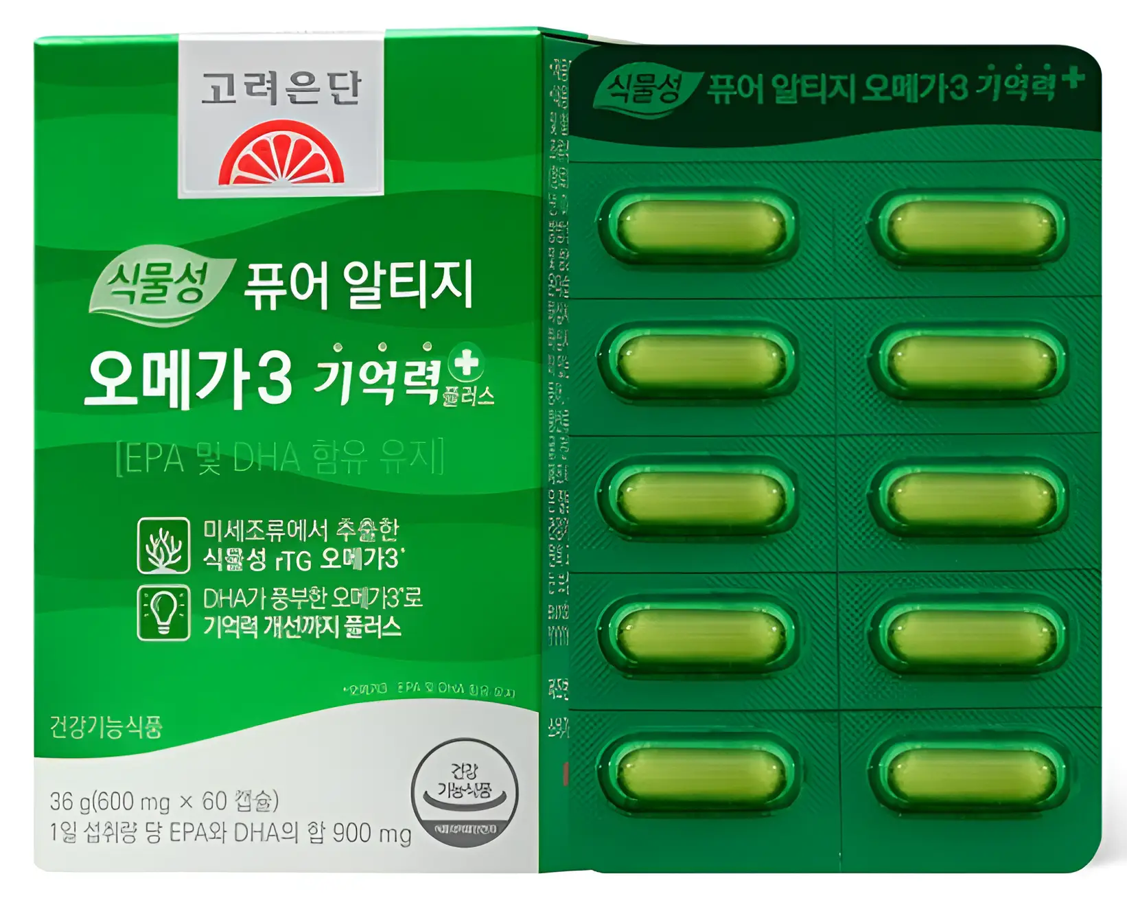 | 🥈 2위 | 고려은단 식물성 알티지 오메가3(미세조류) | 식물성 | 비린내 부담↓ / DSM 계열 언급 / 순도 괜찮음 | 생선원료 불편, 비린내 싫은 분 |