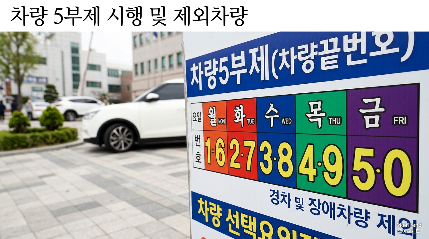 운영 방식은 단순합니다. 차량 번호판 끝자리에 따라 쉬는 요일이 정해지는 방식입니다. 예를 들어 끝자리가 1이나 6이면 월요일, 2나 7이면 화요일처럼 적용됩니다. 주말과 공휴일은 제외되지만, 평일 출퇴근이 잦은 직장인에게는 체감 영향이 적지 않을 수 있습니다. 이처럼 차량 5부제는 선택형이 아니라 정해진 기준에 맞춰 운행을 조정해야 한다는 점이 중요합니다.